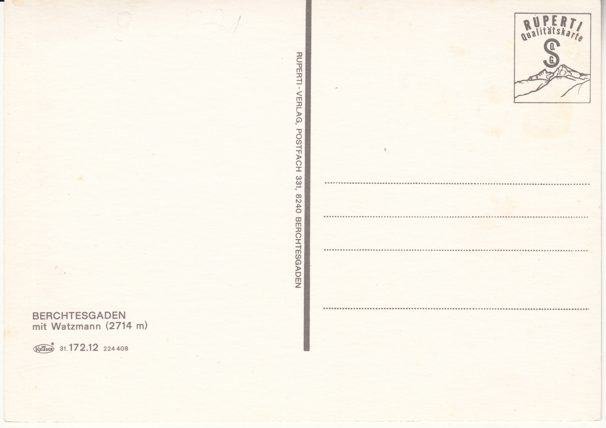 1.172- 27 Krüger Postcard Germany Berchtesgaden