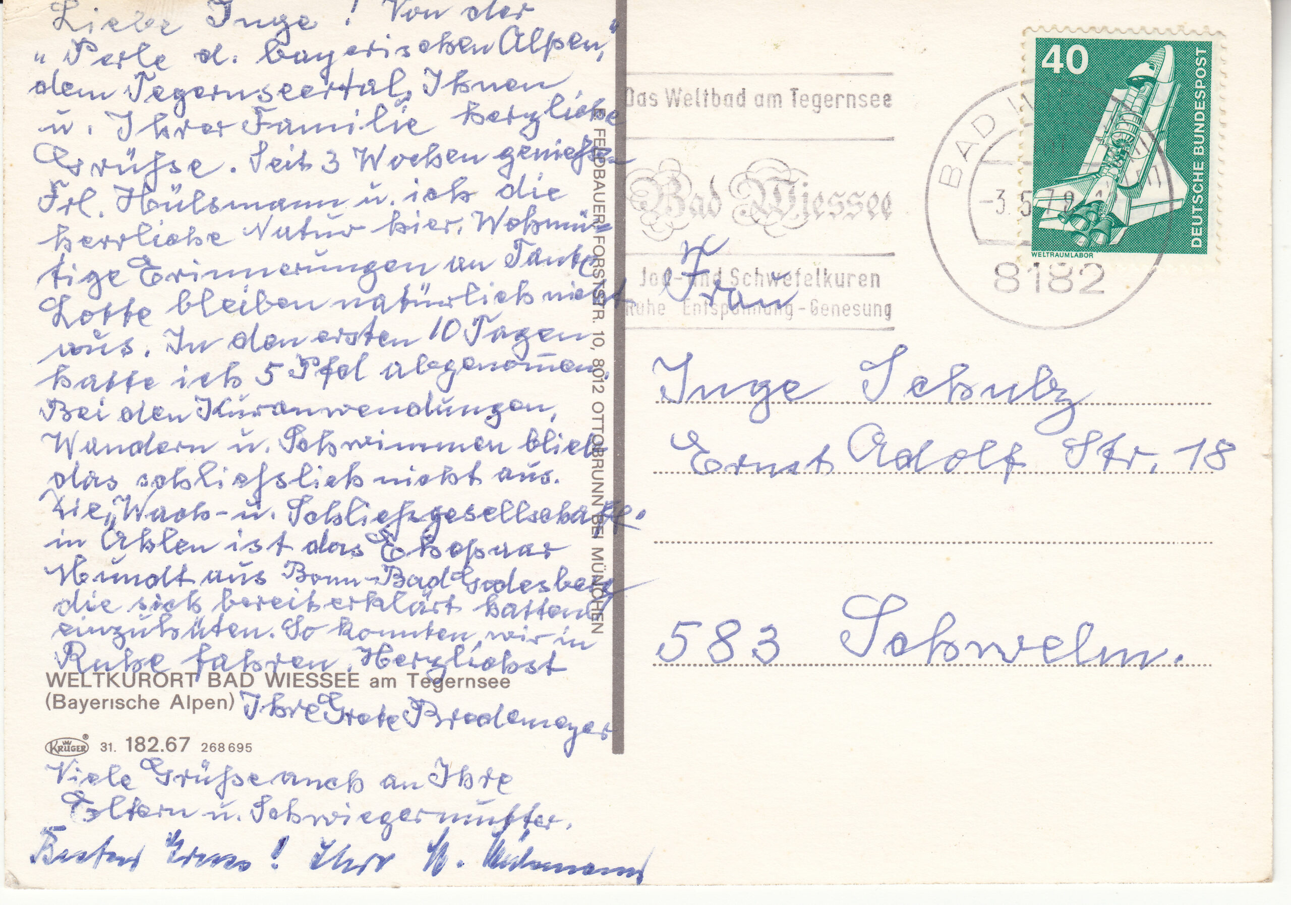 1.182- 67.31 Krüger Postcard Germany Tegernsee Bad Wiessee