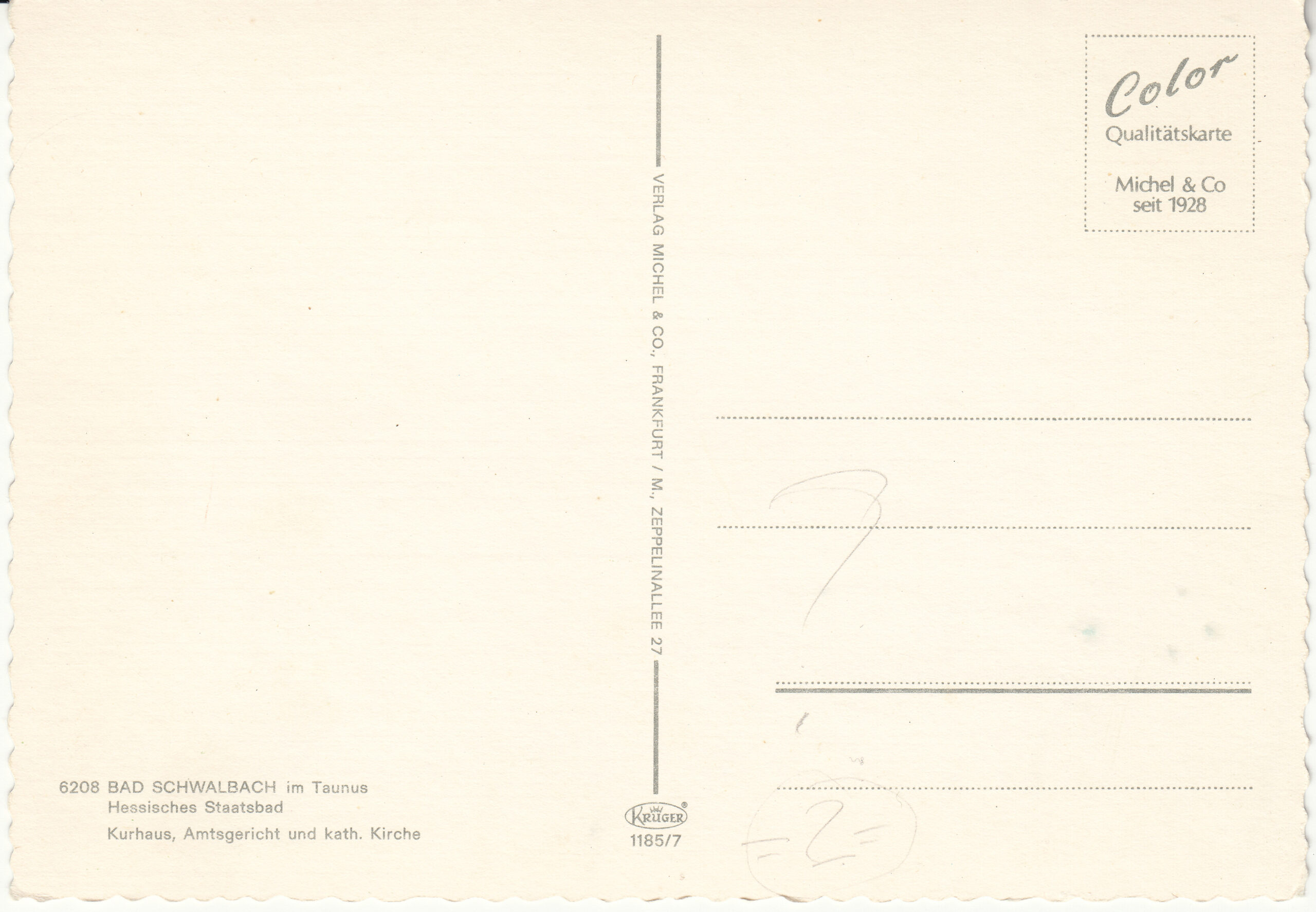 1.185- 7-2 Krüger Postcard Germany Bad Schwalbach