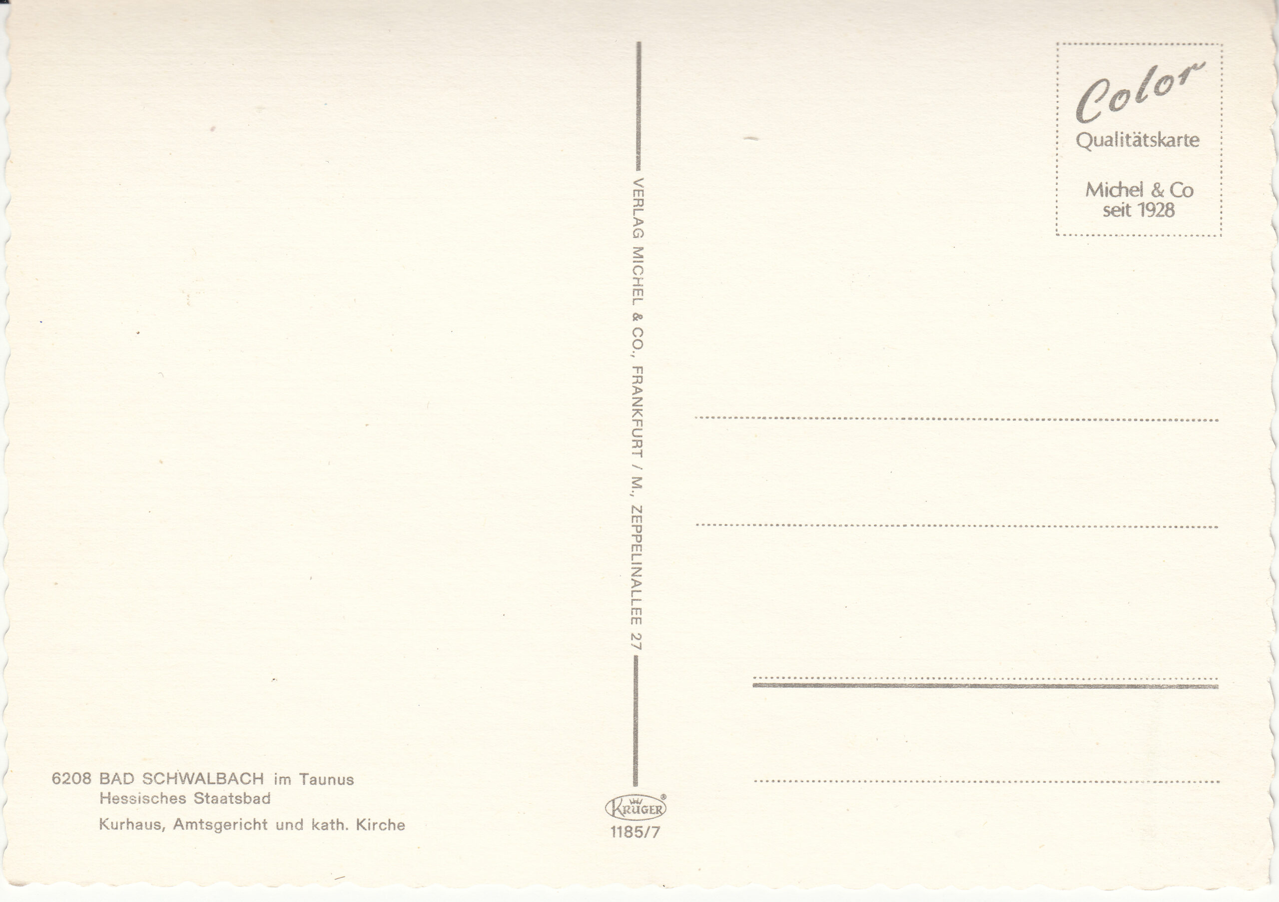 1.185- 7-2 Krüger Postcard Germany Bad Schwalbach
