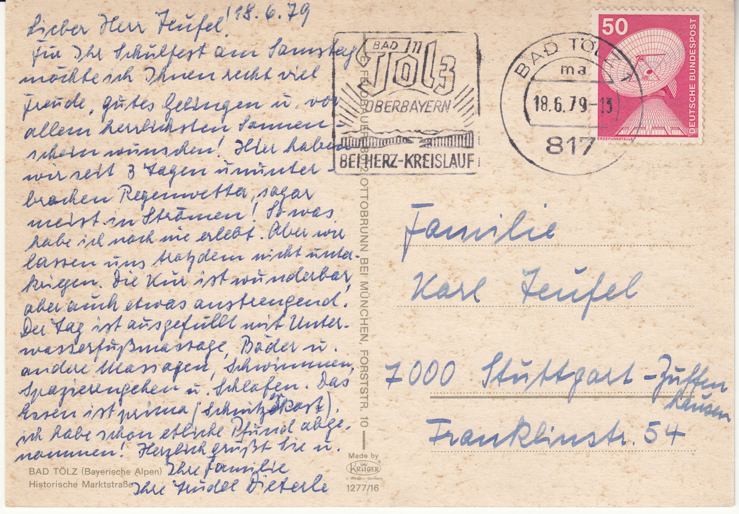 1.277- 16 Krüger Postcard Germany Bad Tölz