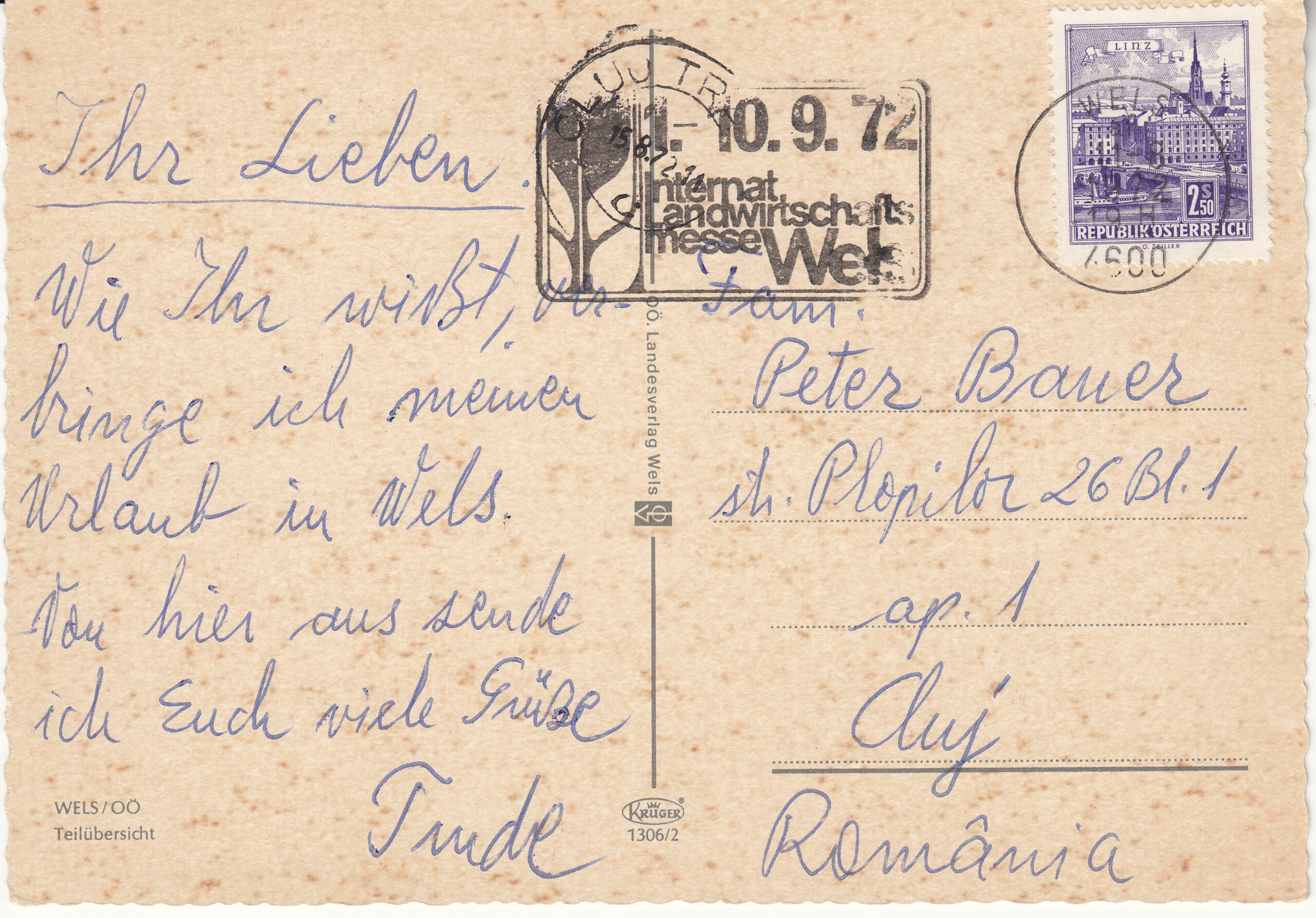 1.306- 2 Krüger Postcard Austria Wels
