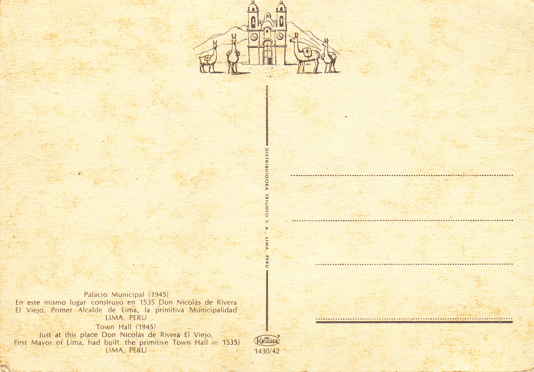 1.430- 42 Kruger Postcard Peru Lima