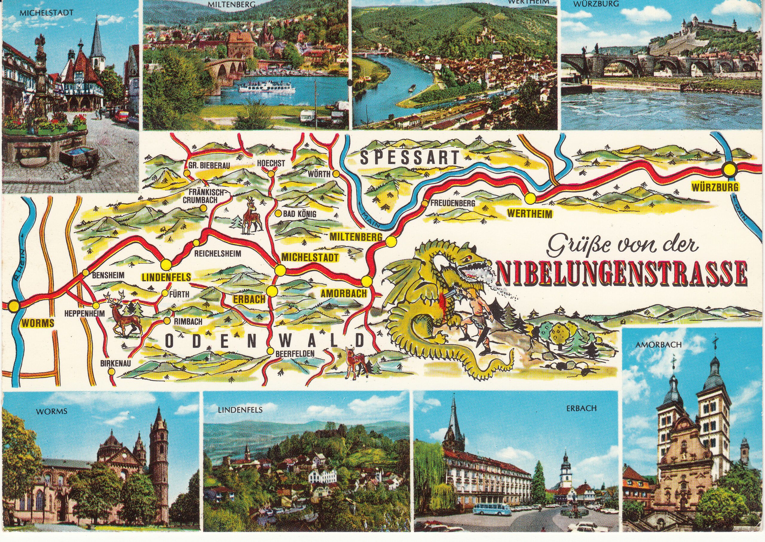 1.439- 6.31 Krüger Postcard Germany Nibelungenstrasse Odenwald