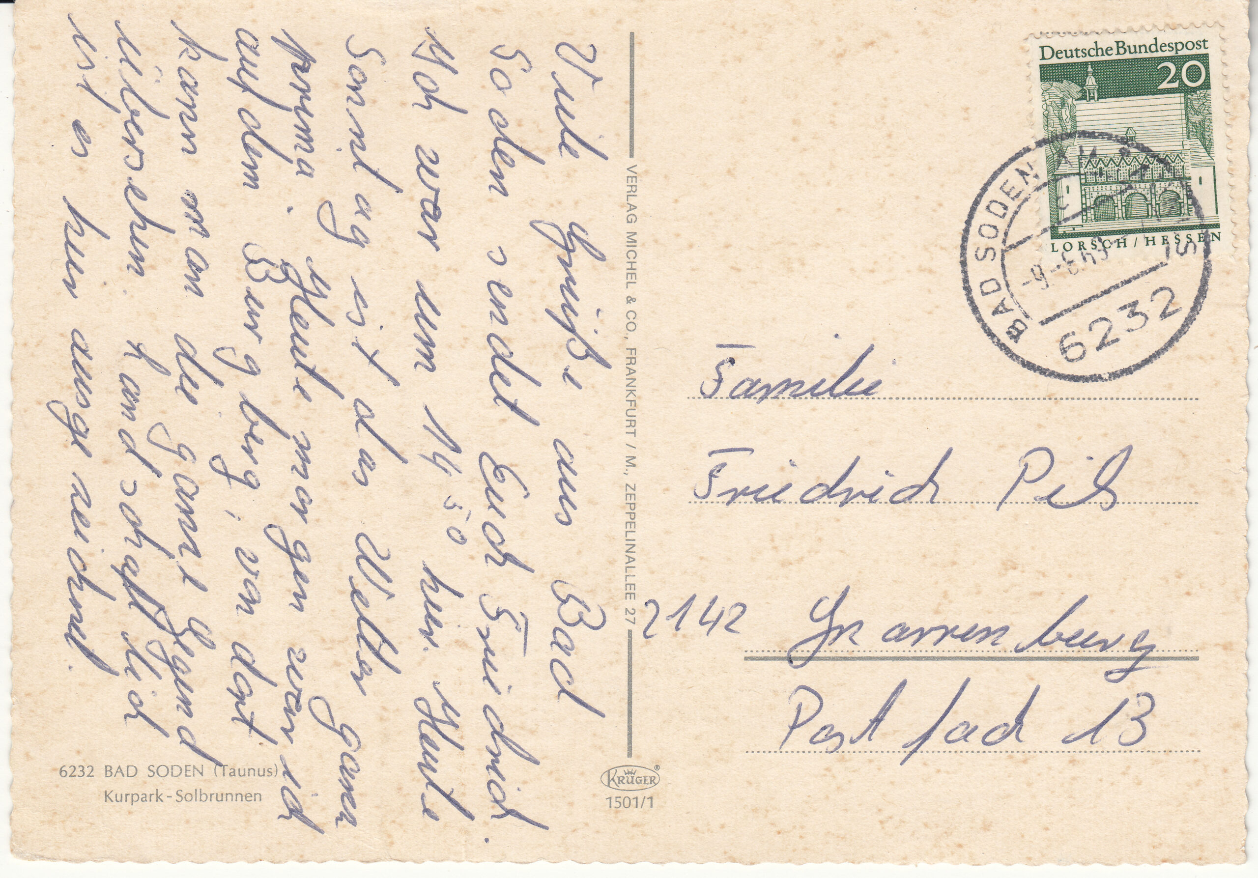 1.501- 1 Krüger Postcard Germany Bad Soden