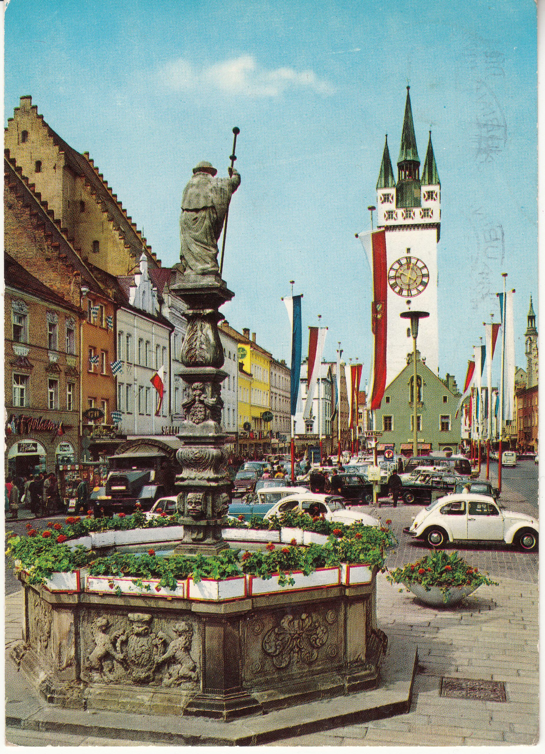 STRAUBING AN DER DONAU, Ludwigsplatz mit Blick zum Stadtturm